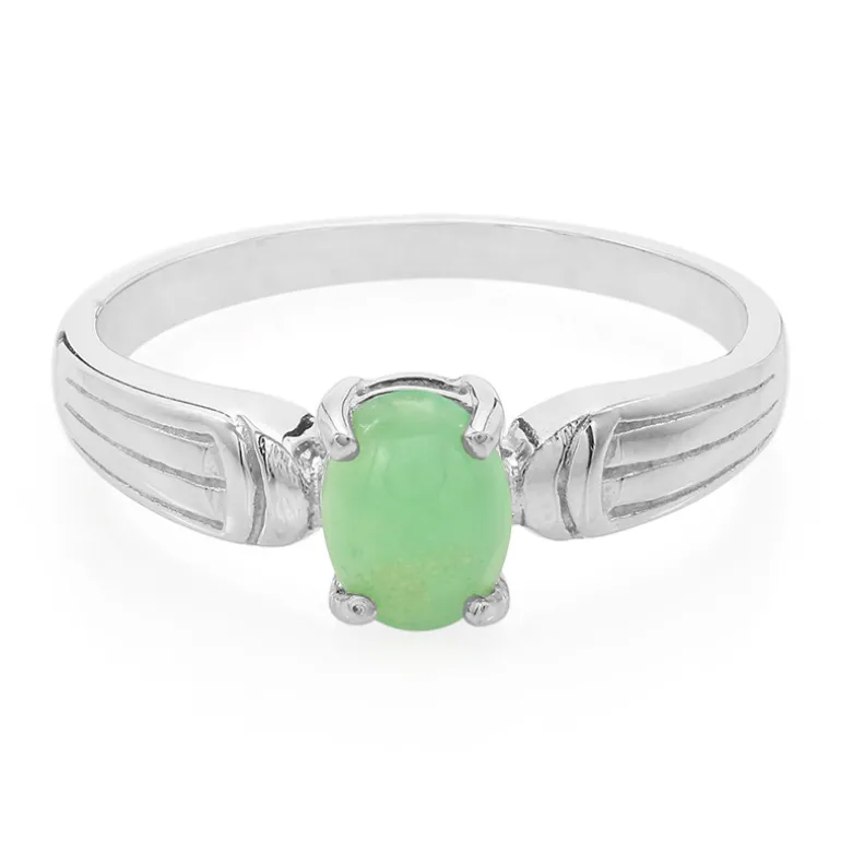 Entdecken Sie die Faszination des Chrysopras Sterlingsilberrings mit einem eleganten australischen Chrysopras von 0,32 Karat in einer ovalen Cabochon-Fassung. Der aus 925er Sterlingsilber gefertigte Ring bietet ein raffiniertes Design mit einem Hauch von lebendigem Grün. Dieser Ring eignet sich perfekt, um Ihrem Alltagsoutfit einen Hauch von Eleganz zu verleihen oder ein formelles Outfit aufzuwerten und ist eine vielseitige Ergänzung für jede Schmucksammlung.