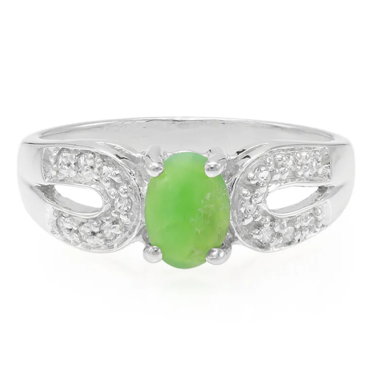 Das Herzstück dieses auffälligen Rings ist ein leuchtender australischer Imperial Chrysopras mit einem Gewicht von 0,35 Karat, der in ein elegantes 925er Sterlingsilberband gefasst ist, das ihm einen Hauch von Raffinesse verleiht. Der ovale Cabochon-Schliff des Chrysopras wird durch 14 funkelnde weiße Topase aus Brasilien mit einem Gesamtgewicht von 0,073 ct ergänzt, die mit ihrem brillanten Rundschliff das Design vervollständigen. Mit einem Gesamtgewicht von 0,423 ct und einer Größe von 23,5 x 20 mm ist der Ring ein exquisites Schmuckstück, das jedem Outfit einen Hauch von Farbe verleiht, sei es bei einem legeren Brunch oder einer formellen Abendveranstaltung.