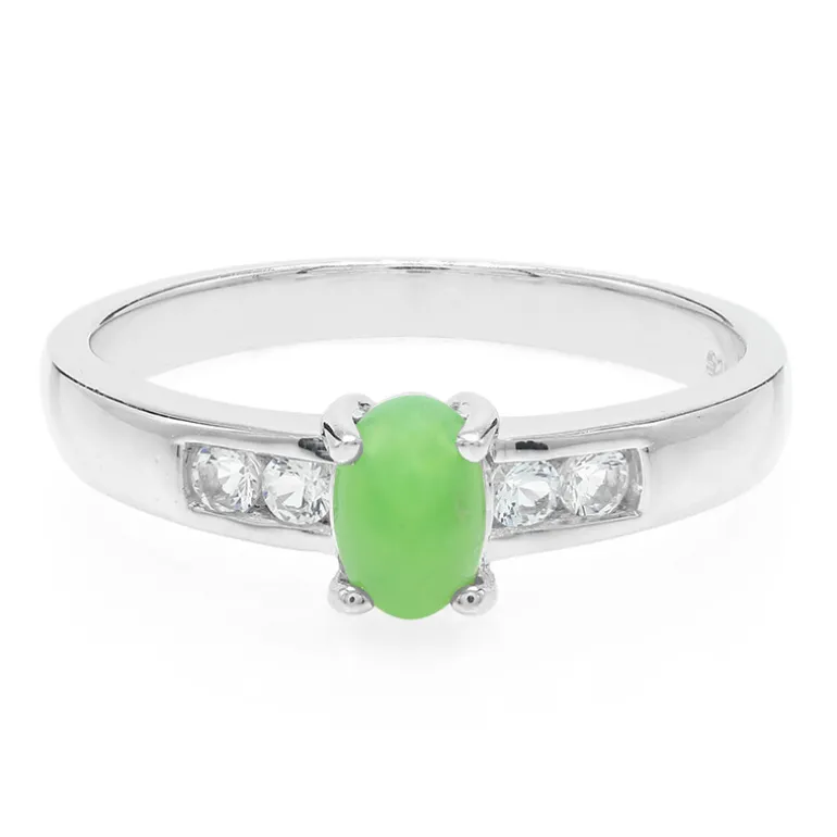 Wir präsentieren unseren exquisiten Chrysopras-Sterlingsilberring mit einem ovalen Cabochon-Chrysopras von 0,38 Karat aus Australien. Dieses elegante Stück ist mit vier brasilianischen weißen Topasen akzentuiert, die seinen raffinierten Reiz verstärken. Perfekt, um Alltagsoutfits oder besonderen Anlässen einen Hauch von Luxus zu verleihen. Sein modernes Design passt sowohl zu Freizeitkleidung als auch zu formellen Anlässen.