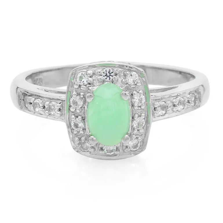 Australischer Chrysopras & Weißer Topas Silberring, 0,562ct
