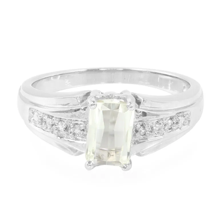 Entdecken Sie die sonnige Ausstrahlung dieses kanariengelben Kunzit-Silberrings. Mit einem brasilianischen Kunzit in der Mitte mit einem Gewicht von 0,855 ct und einem achteckigen Schliff, schimmert dieser Ring mit Raffinesse. Sechs runde Zirkone im Brillantschliff aus Kambodscha mit einem Gesamtgewicht von 0,035 ct verleihen dem Ring zusätzlichen Glanz. Das Band aus 925er Sterlingsilber wiegt ca. 2,59 g und bietet eine haltbare und elegante Fassung für die Steine. Der Ring misst 24 x 20,5 mm und ist ein auffälliger Blickfang, der sich leicht von der Tagesgarderobe in die Abendgarderobe verwandeln lässt.