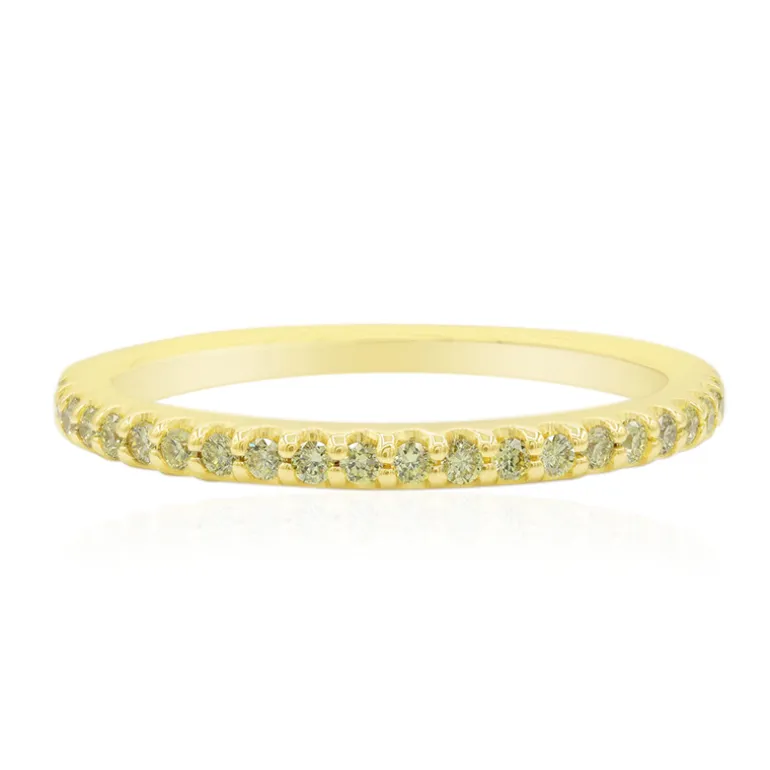 Erleben Sie die Anziehungskraft der Sonne an Ihrem Finger mit diesem strahlenden Ring aus 14-karätigem Gold, der mit 22 funkelnden kanariengelben SI1-Diamanten von insgesamt 0,22 Karat besetzt ist. Jeder Edelstein wurde sorgfältig ausgewählt und in einem runden Brillantschliff mit einem Durchmesser von ca. 1,3 mm platziert, um eine nahtlose Lichtkaskade um das Band zu erzeugen. Mit einem Gewicht von ca. 1,94 Gramm und den Maßen 20 x 21 mm ist dieser Ring ein dezentes, aber dennoch auffälliges Schmuckstück. Er eignet sich perfekt, um Ihrem Outfit einen Hauch von Wärme zu verleihen. Er kann sowohl zu zwanglosen Treffen als auch zu gehobenen Veranstaltungen getragen werden und wertet jedes Ensemble mit seinem fröhlichen Glanz auf.