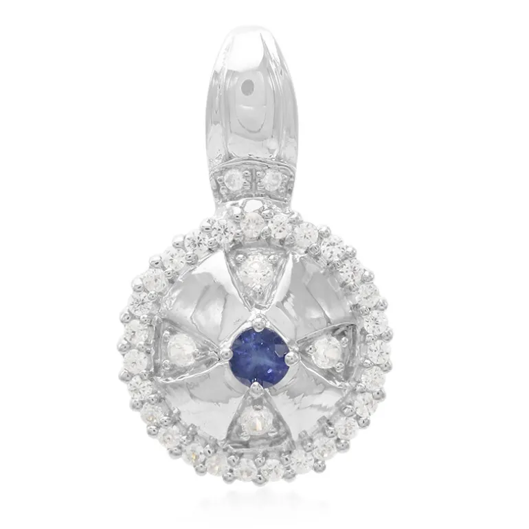 Dieser exquisite Saphir-Anhänger aus Kanchanaburi besticht durch einen 0,2 Karat schweren thailändischen Saphir, der von einem brillanten kambodschanischen Zirkon umgeben ist. Die rundgeschliffenen Edelsteine sind in schimmerndes, platiniertes 925er Sterling Silber gefasst und verleihen jedem Ensemble Eleganz. Dieses Schmuckstück eignet sich sowohl für elegante Abende als auch für den Alltag und ist eine schicke Ergänzung für Ihre Schmucksammlung.