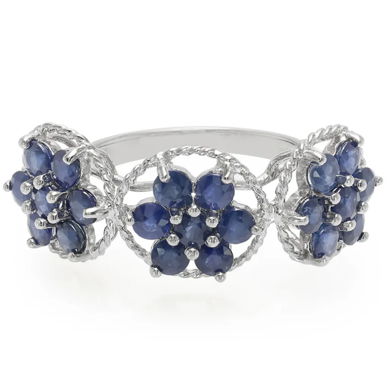 Entdecken Sie die Anziehungskraft von tiefem Blau mit unserem kunstvoll gearbeiteten Ring mit prächtigen Kanchanaburi-Saphiren im Rundschliff aus Thailand von insgesamt 3,68 Karat. Eingebettet in platiniertes 925er Sterlingsilber mit einem Gesamtgewicht von ca. 3,52 Gramm, funkelt jeder Saphir in einem verschnörkelten Blumenmotiv. Dieses elegante Schmuckstück zeugt von Raffinesse und zeitlosem Stil und eignet sich perfekt, um Ihre Abendgarderobe aufzuwerten oder einen Hauch von Farbe in Ihr Alltagsoutfit zu bringen.