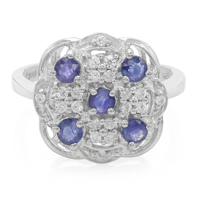 Entdecken Sie Eleganz mit diesem Kanchanaburi Saphir Silberring. Mit 5 lebhaften blauen Saphiren aus Thailand und schillernden Zirkon-Akzenten aus Kambodscha ist jeder Stein sorgfältig rund geschliffen. Der Ring ist aus platiniertem 925er Sterlingsilber gefertigt und bietet einen luxuriösen Touch. Perfekt für besondere Anlässe oder einen Hauch von Eleganz zu alltäglichen Outfits.