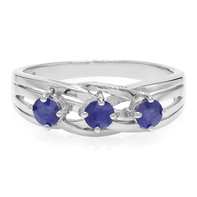 Dieser bezaubernde Ring besteht aus drei thailändischen Kanchanaburi-Saphiren im Rundschliff mit einem Gesamtgewicht von 0,78 Karat, die in einem anmutig verflochtenen Band aus 925er Sterlingsilber mit Platinplattierung gefasst sind. Die tiefblauen Farbtöne der Saphire werden durch den schimmernden Glanz des Metalls perfekt ergänzt. So entsteht ein raffiniertes Schmuckstück, das sowohl für traditionelle Eleganz als auch für modernes Design steht. Dieser Ring eignet sich sowohl für den eleganten Tag als auch für den glamourösen Abend und verleiht jedem Outfit einen Hauch von Luxus.