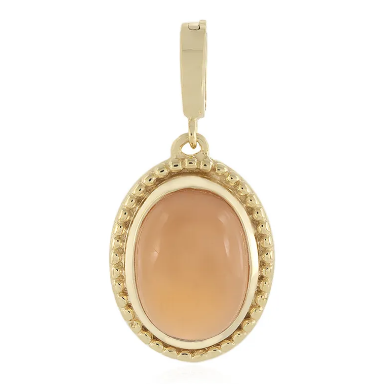 Hüllen Sie sich in die Wärme dieses vergoldeten Silberanhängers mit einem verführerischen ovalen Kangeyam-Mondstein (5,56 Karat) aus Indien. Mit seinen sanften Pfirsichtönen und den Maßen 31×15 mm fängt dieses Schmuckstück subtil das Licht ein und erzeugt ein bezauberndes Leuchten. Dank seines vielseitigen Varioclips kann der Anhänger an verschiedenen Ketten getragen werden und ist somit eine anpassungsfähige Ergänzung Ihrer Garderobe. Dieser Anhänger eignet sich sowohl für einen legeren Brunch als auch für einen formellen Abend und wird zum Mittelpunkt eines jeden Outfits.