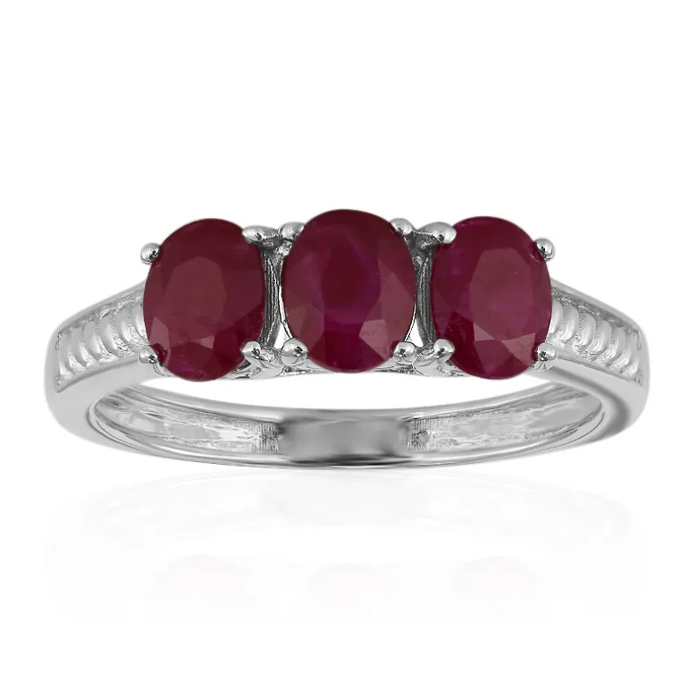 Lassen Sie sich von der königlichen Anziehungskraft dieses Rings mit drei kenianischen Rubinen verzaubern, von denen jeder einzelne die leuchtenden Farbtöne Afrikas widerspiegelt. Dieses 1,175 Karat schwere Edelstein-Trio ist elegant in platiniertes 925er Sterlingsilber gefasst, das sowohl Haltbarkeit als auch Glanz garantiert. Die oval geschliffenen Rubine sind zart in einem 22×19 mm großen Design gefasst, das perfekt ist, um bei jeder Veranstaltung ein Statement abzugeben. Ob zur Abendgarderobe oder zu einem eleganten Arbeitsoutfit, dieser Ring wird Sie bezaubern und in seinen Bann ziehen.