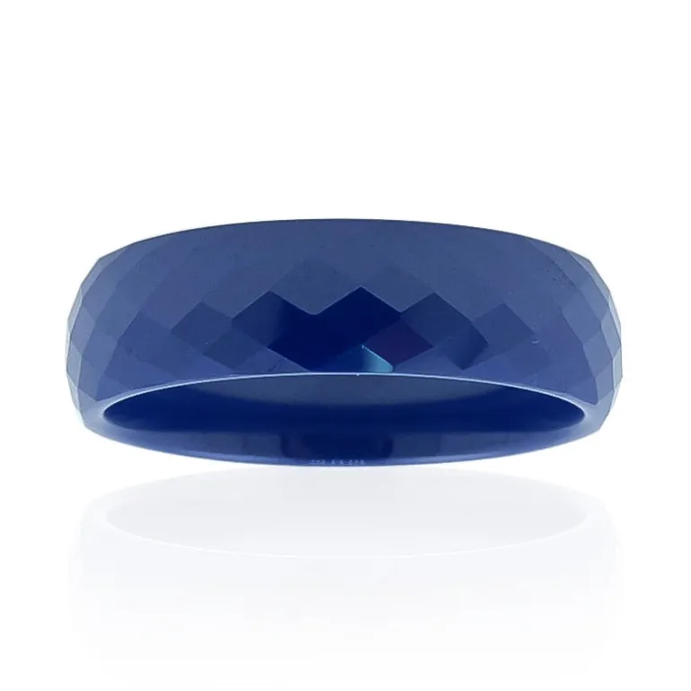 Saphirblauer Keramik-Ring mit Facettenschliff