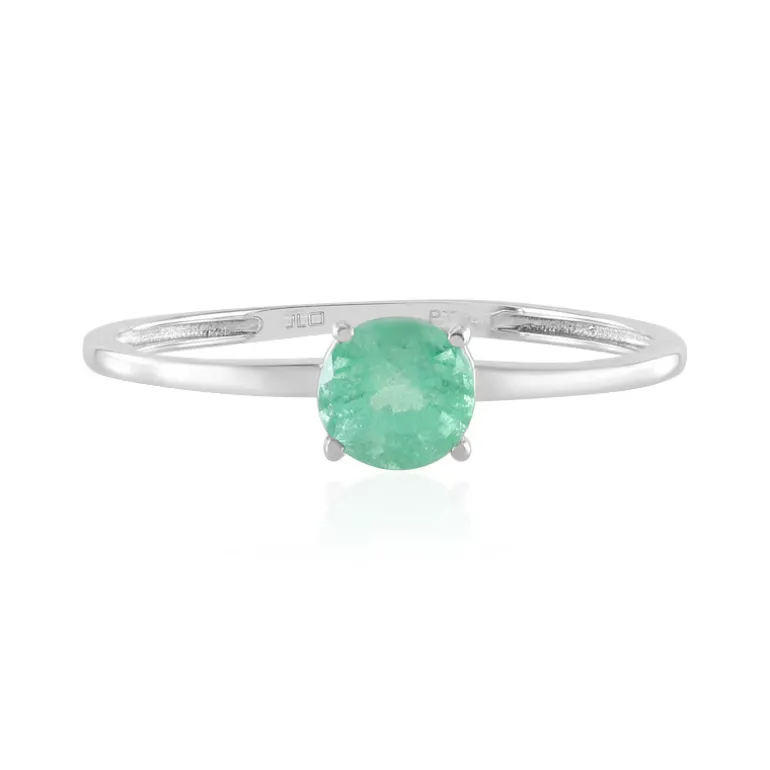 Entdecken Sie die bezaubernde Anziehungskraft dieses Rings mit einem kolumbianischen Smaragd von 0,45 Karat, der in luxuriösem 950er Platin gefasst ist. Der fachmännisch facettierte Rundschliff verstärkt den satten Grünton des Smaragds und macht ihn zu einem fesselnden Herzstück. Das schlanke Platinband mit einem Gewicht von ca. 0,81 Gramm unterstreicht die Ausstrahlung des Edelsteins und macht diesen Ring zu einer zeitlosen Ergänzung für jede Kollektion. Er eignet sich perfekt, um die Eleganz des Alltags zu unterstreichen oder die Abendgarderobe zu ergänzen, und ist ein Zeugnis für anspruchsvollen Geschmack und Stil.