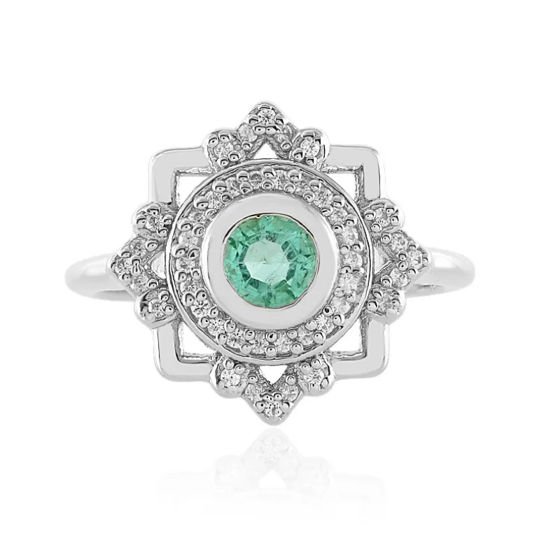 Kolumbianischer Smaragd & Zirkon Silber Ring, 0,852 ct