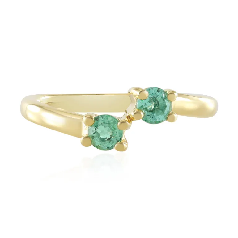 Entdecken Sie die Faszination dieses Rings aus vergoldetem 925er Sterlingsilber, der mit zwei kolumbianischen Smaragden von insgesamt 0,301 Karat geschmückt ist. Jeder der etwa 3,5 mm großen Edelsteine im Rundschliff funkelt in den satten, grünen Farbtönen, die das Markenzeichen der Smaragde aus Kolumbien sind. Das schlichte Design macht ihn zu einem vielseitigen Schmuckstück, das sich sowohl für den eleganten Alltag als auch für besondere Anlässe eignet. Kombinieren Sie dieses geschmackvolle Accessoire mit Ihrem Lieblingsgoldschmuck, um den Look zu vervollständigen.