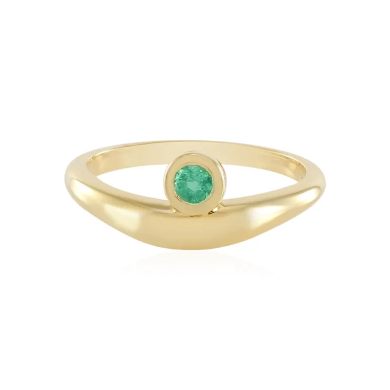 Entdecken Sie den Charme dieses kolumbianischen Smaragdrings, der einen grünen Edelstein von 0,271 Karat präsentiert. Der Ring aus 925er Sterlingsilber mit üppiger Goldplattierung wiegt ca. 3,58 g und misst 22 x 21 mm. Der Smaragd im Rundschliff strahlt aus einem modernen, schlanken Band und bietet eine unaufdringliche Eleganz. Dieser Ring eignet sich sowohl für den Alltag als auch für besondere Momente und verspricht, Ihre Lieblingskleidung mit einem Hauch von leuchtendem Grün zu ergänzen.