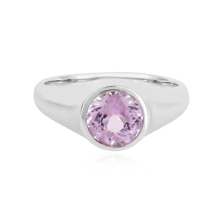 Entdecken Sie den bezaubernden Lavendelton dieses sorgfältig gearbeiteten Rings aus 9 Karat Gold. Sein Herzstück ist ein 1,53 Karat Kunzit im Rundschliff, der aus den reichen Landschaften Pakistans stammt und in ein schlankes, modernes Band eingefasst ist, das etwa 4,41 Gramm wiegt. Dieser Ring ist ideal, um sowohl der Tages- als auch der Abendgarderobe einen Hauch von Raffinesse zu verleihen, und verspricht, eine vielseitige Ergänzung für jede Schmucksammlung zu sein.