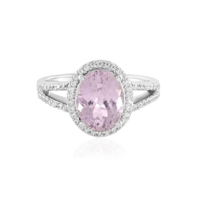 Entdecken Sie den bezaubernden Charme dieses afghanischen Kunzitrings im Ovalschliff, der von einem Halo aus strahlenden kambodschanischen Zirkonen von insgesamt 0,551 ct umgeben ist. Dieses elegante Schmuckstück aus platiniertem 925er Sterlingsilber wiegt etwa 3,05 g und hat ein Gesamtgewicht von 3,381 ct. Der zartrosa Farbton und die funkelnden Akzente machen ihn zur idealen Wahl für romantische Abende oder schicke Veranstaltungen am Tag.