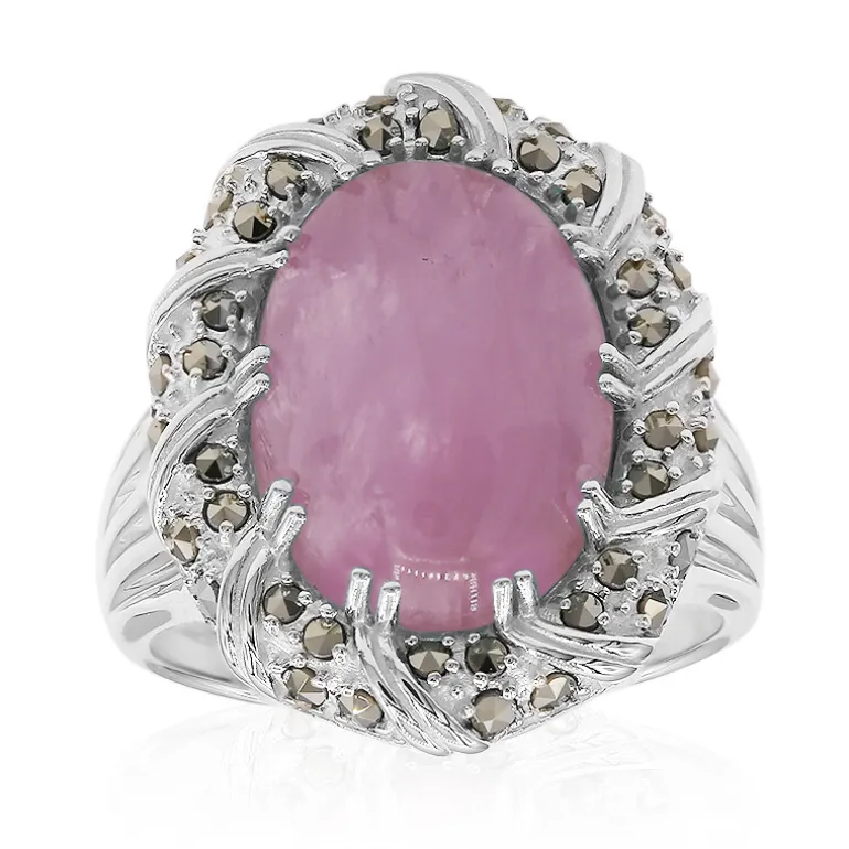 Entdecken Sie die Anziehungskraft dieses bezaubernden Rings, bei dem der zartrosa Farbton eines 6-karätigen afghanischen Kunzit-Cabochons im Mittelpunkt steht, umgeben von dem funkelnden Glanz österreichischer Markasit-Akzente. Das aus feinem 925er Sterlingsilber gefertigte Schmuckstück wiegt etwa 6,2 Gramm und ist damit sehr präsent. Der ovale Kunzit-Cabochon, umrahmt von Markasit, ist so geschliffen, dass er Tiefe und Farbe zur Geltung bringt. Dieser Ring eignet sich perfekt für einen Hauch von Eleganz im Alltag oder als auffälliges Accessoire für besondere Anlässe und verspricht, ein geschätzter Bestandteil Ihrer Sammlung zu werden.