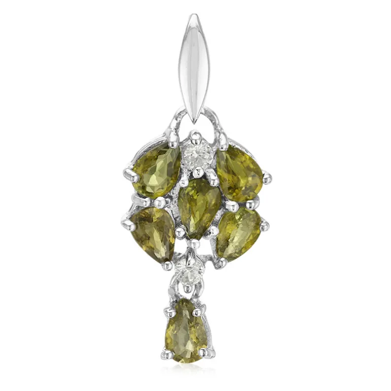 Entdecken Sie die Faszination dieses faszinierenden Anhängers mit sechs birnenförmigen Kupferturmalinen aus Mosambik und zwei Zirkonen im Brillantschliff aus Kambodscha. Er ist aus platiniertem 925er Sterlingsilber gefertigt und hat ein Gesamtkaratgewicht von 1,692 ct. Perfekt, um jedem Outfit Eleganz zu verleihen. Tragen Sie ihn zu einem einfachen Kleid oder einer schicken Bluse für einen raffinierten Look.