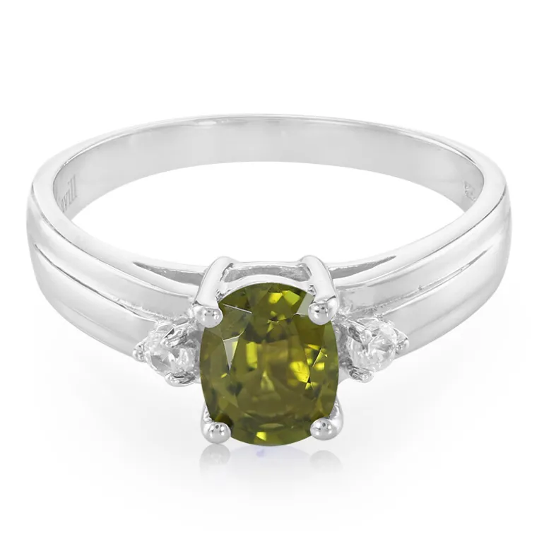 Entdecken Sie den schimmernden Charme dieses Rings aus Sterlingsilber mit einem fesselnden Kupferturmalin von 1,09 Karat im Ovalschliff aus Mosambik, eingebettet zwischen zwei funkelnden Zirkonen aus Kambodscha von insgesamt 0,15 Karat. Das elegante Design ist mit einer Platinveredelung versehen, die für ein luxuriöses Finish sorgt und es zu einem idealen Accessoire für legere und formelle Anlässe macht. Eine exquisite Wahl für alle, die die einzigartige Schönheit seltener Edelsteine zu schätzen wissen.