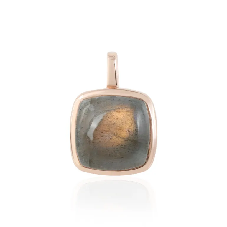 Genießen Sie die warmen Kupfertöne dieses Labradorit-Anhängers von Maniry, der das bezaubernde Lichtspiel dieses einzigartigen Edelsteins zur Geltung bringt. Eingefasst in luxuriöses 925er Sterlingsilber mit einer zarten Rosévergoldung, ist dieser 6,75ct antike Kissen-Cabochon ein Schatz aus Madagaskar. Mit einer Größe von 20×14 mm ist er eine subtile und doch auffällige Ergänzung Ihrer Sammlung. Dieser Anhänger eignet sich perfekt, um sowohl der Tages- als auch der Abendgarderobe einen raffinierten Touch zu verleihen, und ist ein Beweis für zeitlose Eleganz.
