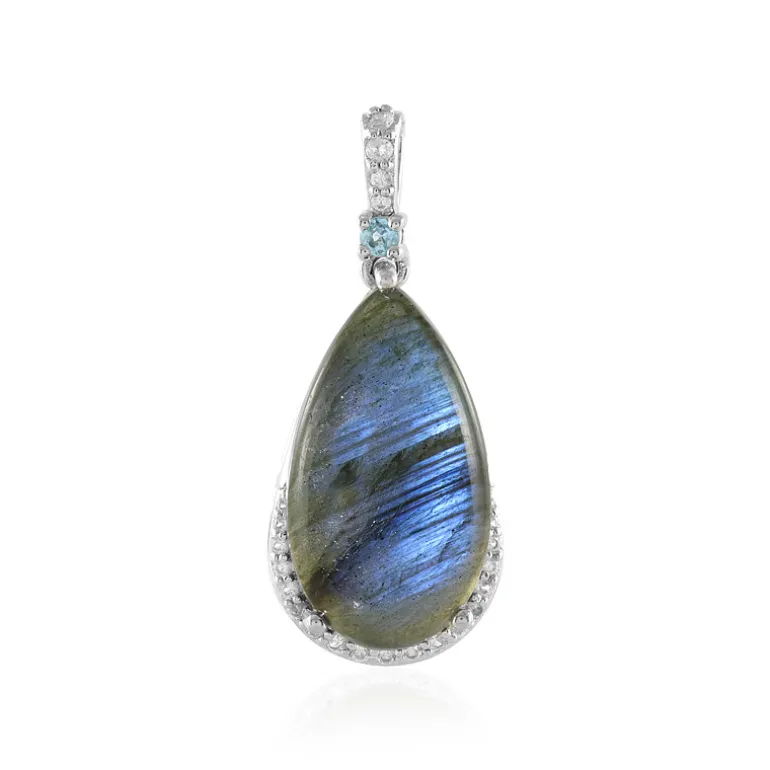 Madagaskar Labradorit & Schweizer Blautopas Silber-Anhänger, 19ct