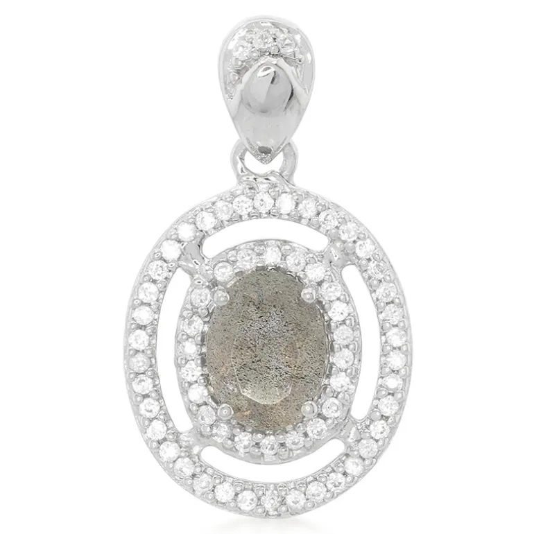 Entdecken Sie die bezaubernde Anziehungskraft dieses Anhängers aus Sterlingsilber mit einem exquisiten ovalen Labradorit von 0,92 Karat aus Madagaskar. Elegant umrahmt von 64 funkelnden runden Zirkonen im Brillantschliff aus Kambodscha mit einem Gesamtgewicht von 0,465 ct, präsentiert dieser Anhänger einen harmonischen Kontrast aus Mystik und Brillanz. Mit einem Gewicht von 1,7 g ist dieses raffinierte Stück ein einzigartiges Accessoire. Er ist ideal, um sowohl der Freizeit- als auch der Alltagskleidung einen Hauch von Eleganz zu verleihen und verspricht eine vielseitige Ergänzung für jede Schmucksammlung zu sein.