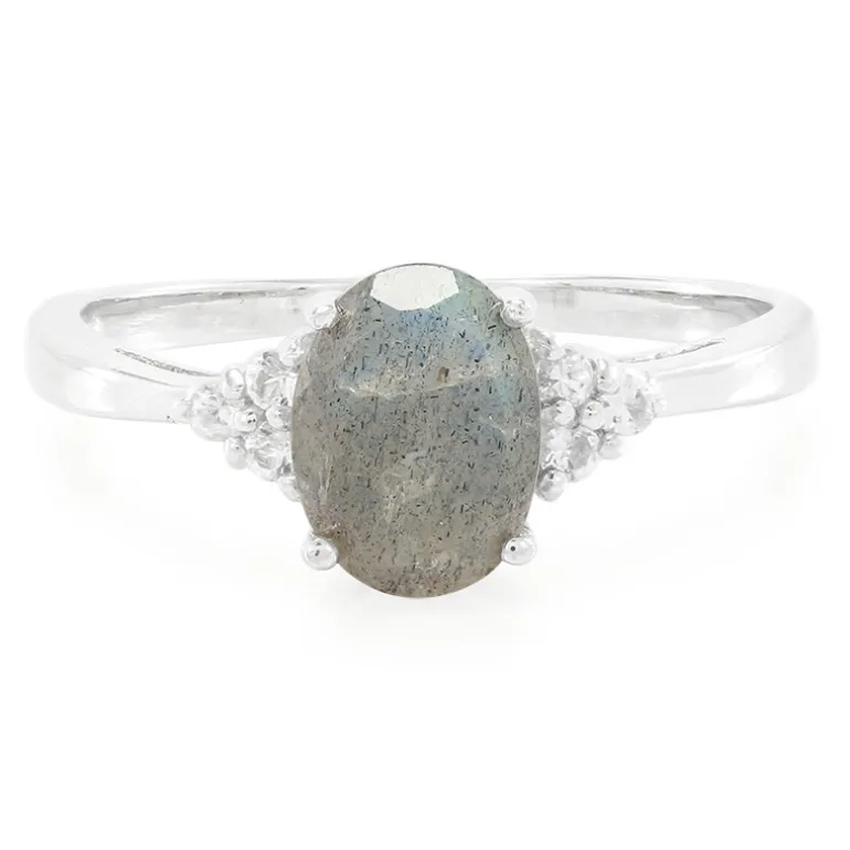 Madagaskar Labradorit & Weißer Topas Silber Ring, 1ct