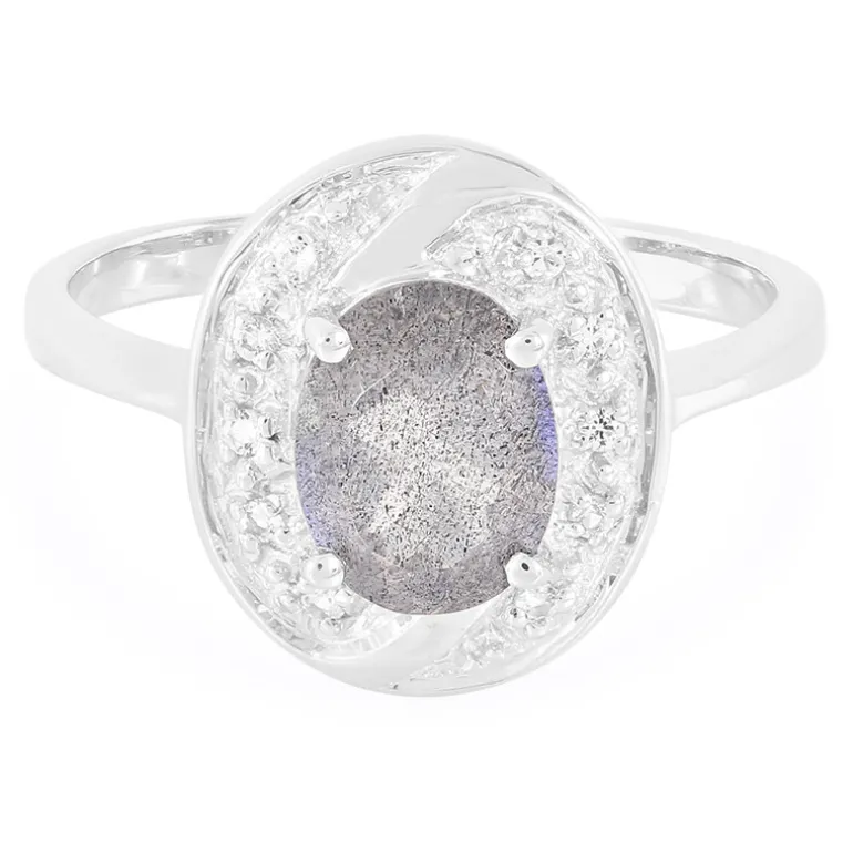 Entdecken Sie die bezaubernde Anziehungskraft dieses Labradorit-Rings. Er ist aus 925er Sterlingsilber gefertigt und zeigt einen Labradorit aus Madagaskar im Ovalschliff, der mystische Farben ausstrahlt. Der Ring ist mit 10 Weißtopasen im Brillantschliff besetzt, die ihm Glanz und Eleganz verleihen. Es eignet sich sowohl für legere als auch für formelle Anlässe. Kombinieren Sie es mit einem schicken Outfit für einen unvergesslichen Look.
