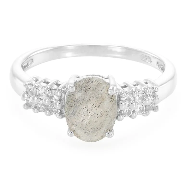 Madagaskar Labradorit & Weißer Topas Silber Ring, 1,03ct