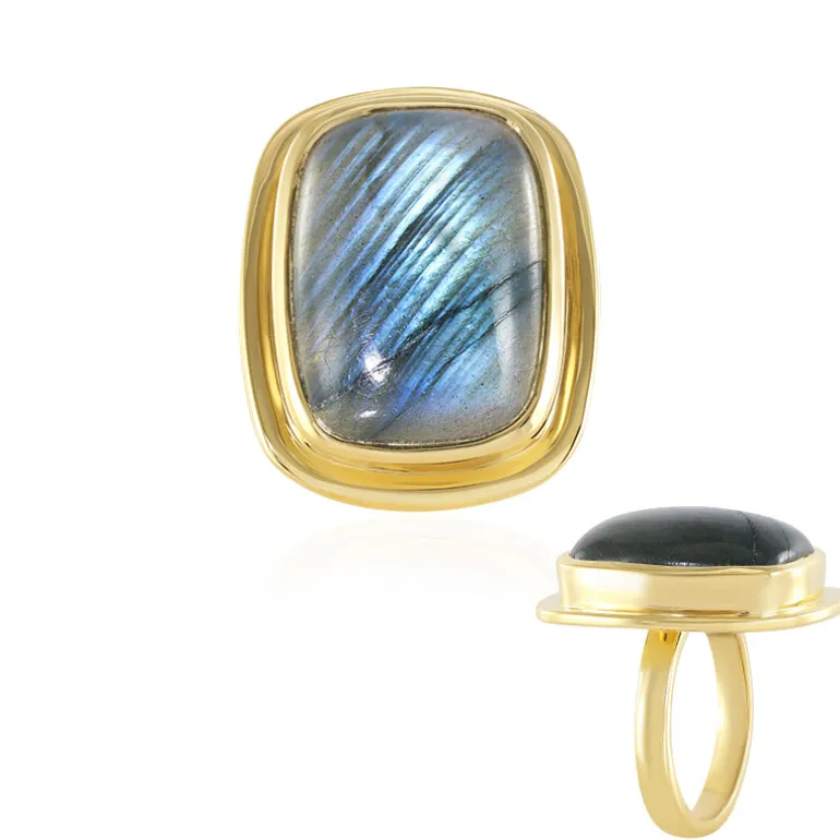 Madagaskar Labradorit Goldplattierter Silberring, 13,55 ct