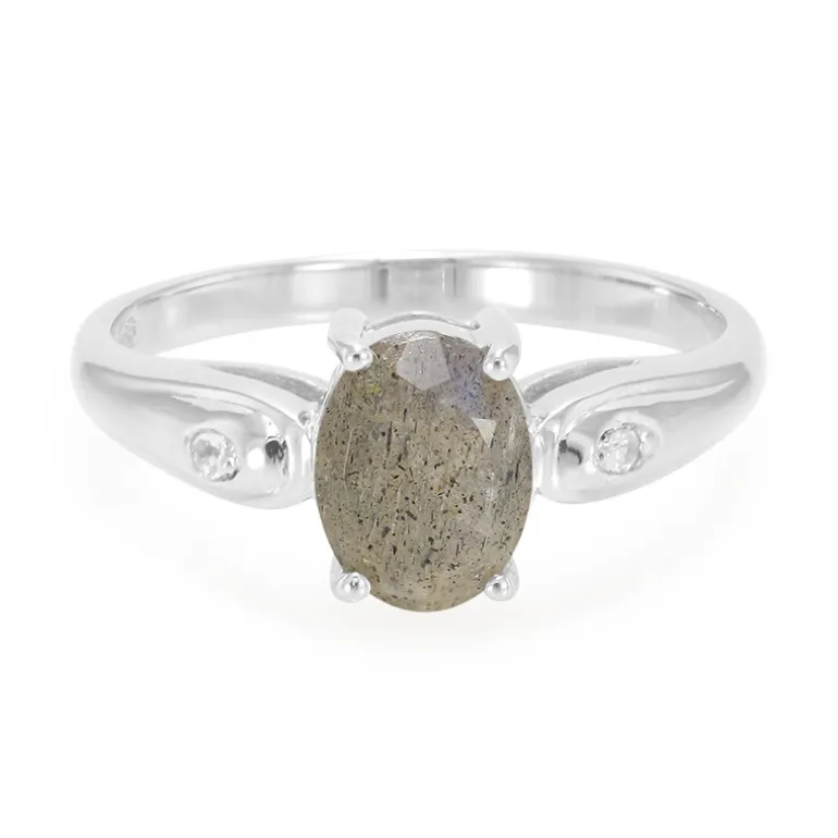 Entdecken Sie die bezaubernde Anziehungskraft unseres Silberrings, der einen auffälligen Labradorit von 0,94 Karat aus Madagaskar mit seinem einzigartigen Farbspiel präsentiert. Flankiert von zwei leuchtenden brasilianischen Weißtopasen ist dieses Stück ein wahres Zeugnis minimalistischer Eleganz. Der aus hochwertigem 925er Sterling Silber gefertigte Ring bietet ein perfektes Gleichgewicht zwischen Raffinesse und Stil und ist somit eine vielseitige Ergänzung für jede Schmucksammlung. Egal, ob für einen zwanglosen Ausflug oder eine besondere Abendveranstaltung, er wird Ihrem Ensemble einen Hauch von Geheimnis und Charme verleihen.
