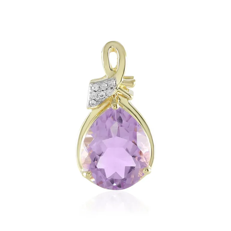 Entdecken Sie die bezaubernde Anziehungskraft dieses vergoldeten Anhängers aus Sterlingsilber mit einem faszinierenden brasilianischen Lavendel-Amethysten von 3,969 Karat. Der zentrale Edelstein im Tränenschliff zeigt einen subtilen Farbverlauf in violetten Tönen, die im Licht tanzen. Der Anhänger ist mit sieben kambodschanischen Zirkonen von insgesamt 0,054 Karat besetzt und glänzt mit einem zarten Funkeln. Mit einer Größe von 22 x 11 mm verkörpert er sowohl Anmut als auch Raffinesse und ist damit ideal für den Alltag oder die Abendgarderobe. Das vergoldete 925er Sterlingsilber verleiht ihm einen Hauch von Luxus und sorgt dafür, dass dieses Schmuckstück zeitlos in Qualität und Stil bleibt.