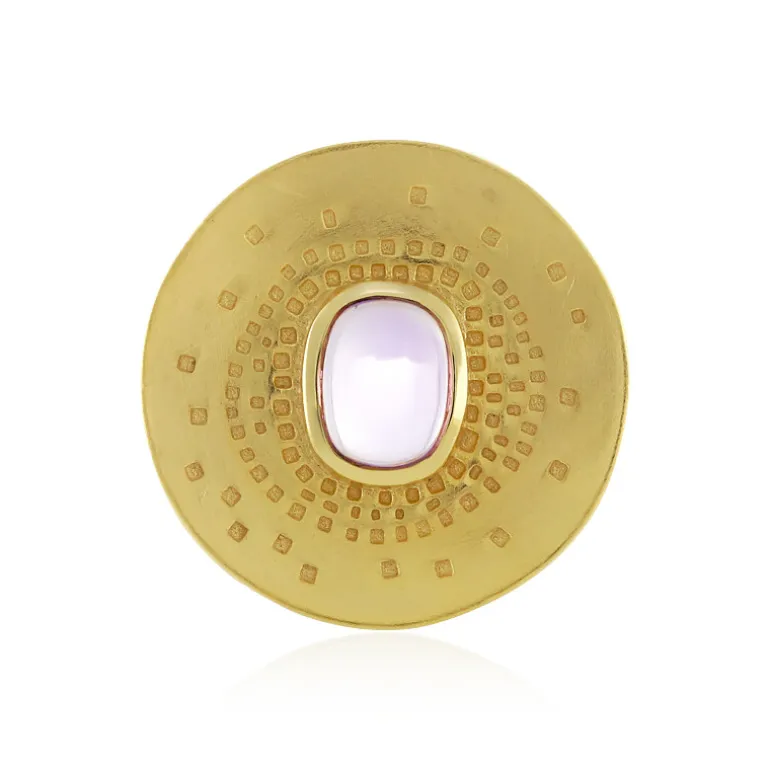 Entdecken Sie die ruhige Schönheit unseres 1,579 ct brasilianischen Lavendel-Amethyst-Anhängers aus der MONOSONO COLLECTION. Auf der Basis von glänzendem 925er Sterlingsilber gefertigt und mit einer prächtigen Vergoldung veredelt, präsentiert dieser Anhänger einen einzigartigen Amethysten im antiken Cabochon-Schliff, der von einer 23×23 mm großen, strukturierten Scheibe umschlossen wird, die an den Glamour vergangener Zeiten erinnert. Dieser Anhänger eignet sich perfekt, um sowohl lässigen als auch formellen Outfits einen Hauch von Eleganz zu verleihen und wird das Herz eines jeden Schmuckliebhabers erobern.