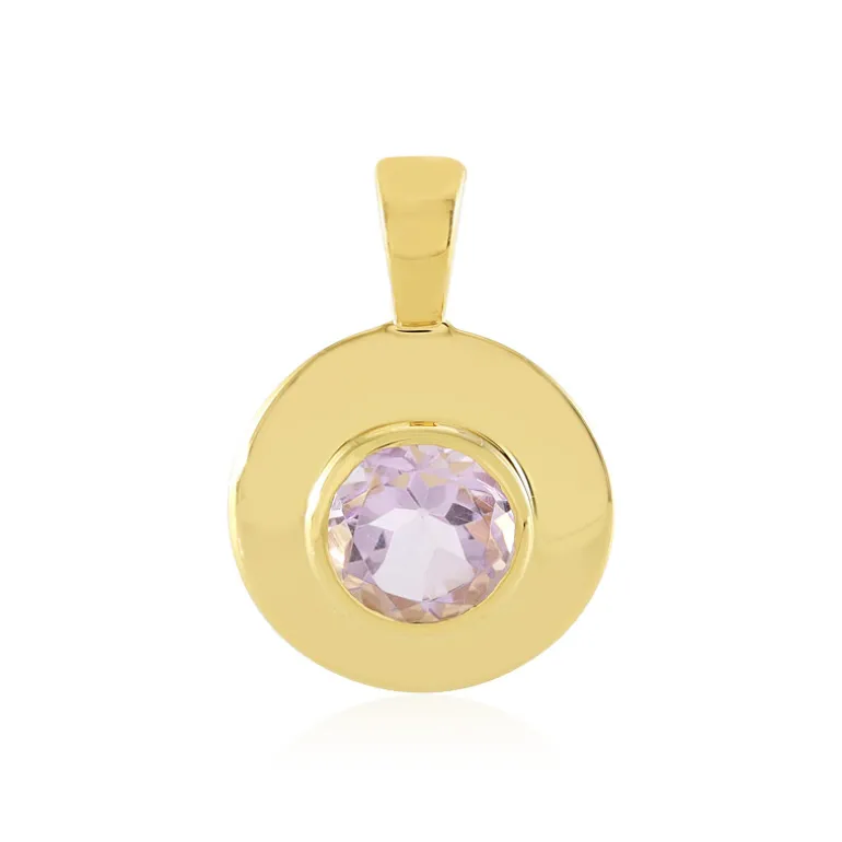 Entdecken Sie den subtilen Charme dieses Anhängers aus vergoldetem 925er Sterlingsilber, der mit einem zarten lavendelfarbenen Amethyst aus den üppigen Landschaften Brasiliens geschmückt ist. Der zarte Farbton des Edelsteins ist in einem runden Schliff mit einem Gewicht von 2,294 Karat eingefangen und wird von der eleganten Schlichtheit des Designs perfekt eingerahmt. Stellen Sie sich diesen Anhänger als letzten Schliff zu einem pastellfarbenen Kleid oder als raffinierte Ergänzung zu einer frischen weißen Bluse vor, um einen anmutigen Look zu kreieren, der sich sowohl für ein legeres Brunch als auch für einen formellen Abend eignet.