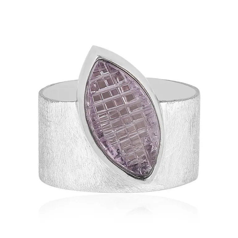 Entdecken Sie den bezaubernden Charme dieses brasilianischen Lavendel-Amethyst-Rings, gekrönt von einem 2,57-karätigen Stein, der in einer einzigartigen Marquise-Form geschliffen ist, die bei jeder Drehung Ihrer Hand ins Auge fällt. Dieser Ring aus der MONOSONO COLLECTION ist aus glänzendem 925er Sterling Silber gefertigt und verfügt über ein breites Band, das den marquisenförmigen Amethysten ergänzt. Die Textur des Silberbandes verleiht dem Design einen modernen Touch und macht ihn zu einem idealen Accessoire für den Alltag oder einen besonderen Abendlook. Genießen Sie die sanften Lavendelfarben, die sich mühelos vom Büroschick bis hin zu besonderen Abenden kombinieren lassen.