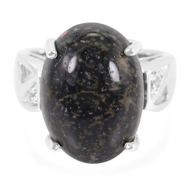 Entdecken Sie die wilde Schönheit dieses Leopardenfell-Opalrings, der einen atemberaubenden Edelstein von 11,83 Karat aus Mexiko mit einem ovalen Cabochon-Schliff präsentiert, der einen exotischen Charme ausstrahlt. Flankiert von zwei weißen Topasen im Brillantschliff von insgesamt 0,07 Karat aus Brasilien, verbindet dieses Schmuckstück die Faszination der Natur mit anspruchsvoller Handwerkskunst. Der Ring ist in 925er Sterlingsilber gefasst, das seine erdigen Töne perfekt ergänzt, und ist ein Statement für Eleganz und Vielseitigkeit. Er ist ideal, um sowohl der Freizeit- als auch der formellen Kleidung einen Hauch von Faszination zu verleihen und ist eine fesselnde Ergänzung für jede Schmucksammlung.