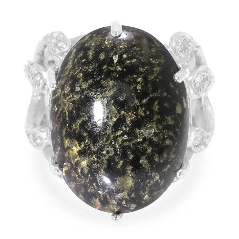 Entdecken Sie die wilde Eleganz dieses exquisiten Leoparden-Opalrings, der aus dem Herzen Mexikos stammt. Mit einem beeindruckenden ovalen Cabochon von 22,53 Karat, der die Essenz des Leopardenfells einfängt, schimmert dieses Schmuckstück geheimnisvoll und anmutig zugleich. Ergänzt durch das Funkeln von 24 strahlenden weißen Topas-Steinen von insgesamt 0,45 Karat, von denen jeder präzise geschliffen ist, um seine Brillanz zu verstärken, und gefasst in hochwertigem 925er Sterlingsilber mit einem Gewicht von 6,15 Gramm, ist dieser Ring eine Verkörperung von Raffinesse. Er eignet sich perfekt, um Ihrer Abendgarderobe einen Hauch von einzigartigem Glamour zu verleihen oder Ihr Tagesensemble aufzuwerten und verspricht, bei jeder Veranstaltung für Gesprächsstoff zu sorgen.