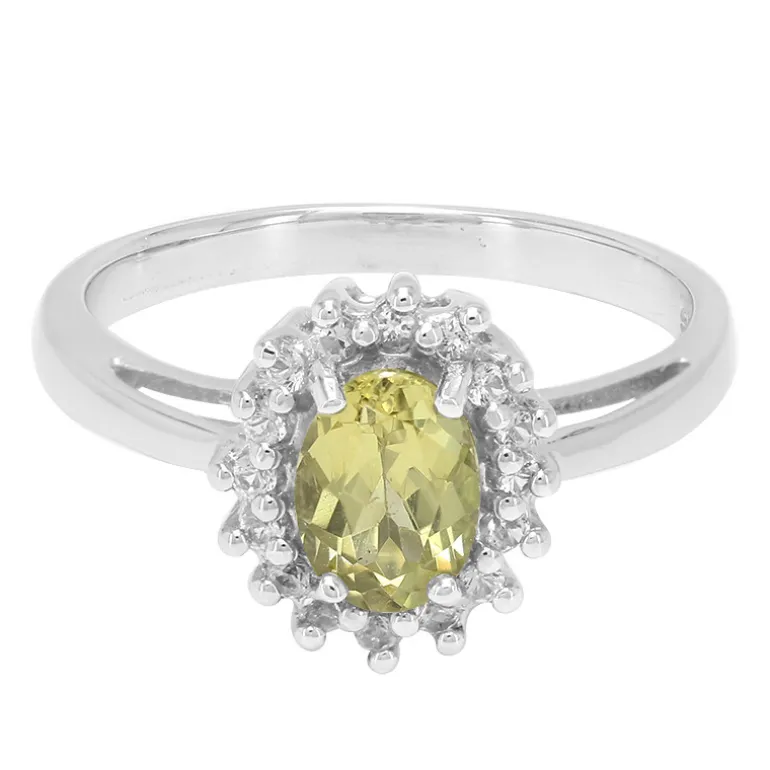 Entdecken Sie den lebhaften Charme dieses bezaubernden Rings mit einem sonnenverwöhnten 0,73-karätigen ovalen Zitronen-Apatit aus Madagaskar, der von 16 runden weißen Topasen im Brillantschliff aus Brasilien umgeben ist. Gefertigt aus glänzendem 925er Sterlingsilber mit einem Gesamtgewicht von 0,908 ct, strahlt dieses Schmuckstück Eleganz aus. Dieser Ring eignet sich perfekt, um einen Farbtupfer in Ihre Alltagsgarderobe zu bringen oder ein schickes Abendoutfit zu ergänzen. Er ist eine vielseitige Ergänzung für jede Schmucksammlung.