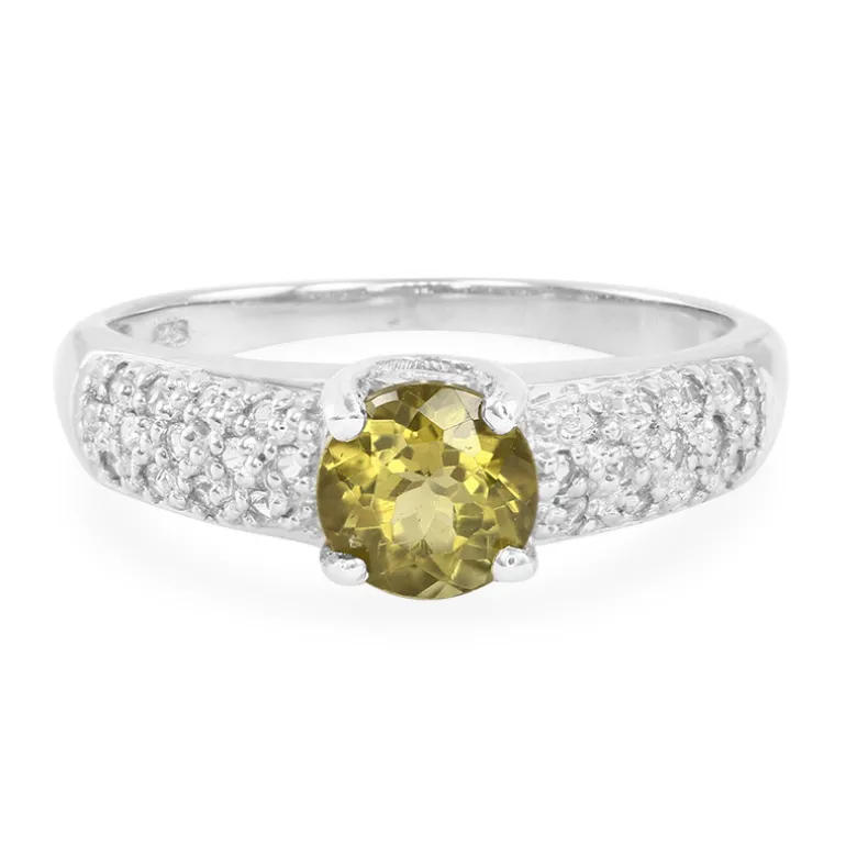 Entdecken Sie die Anziehungskraft des Zitronen-Apatit-Sterlingsilberrings mit einem leuchtenden 0,72-karätigen Edelstein im Rundschliff aus Madagaskar. Akzentuiert durch 26 funkelnde brasilianische weiße Topase, verkörpert dieser Ring aus 925er Sterlingsilber Eleganz. Er ist die perfekte Wahl für Abendveranstaltungen oder besondere Anlässe und verleiht sowohl legerer als auch formeller Kleidung einen Hauch von Eleganz.