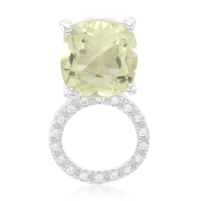 Entdecken Sie die Raffinesse dieses Anhängers aus Limonen-Citrin mit einem 1,94 Karat großen Edelstein im Kissenschliff aus Brasilien. Der Anhänger aus Sterlingsilber ist mit 18 kambodschanischen Zirkonen im Rundschliff verziert und für ein poliertes Finish plattiert. Dieser Anhänger ist vielseitig einsetzbar und ein echter Blickfang – ideal für elegante Abende oder um dem Alltag einen Hauch von Glanz zu verleihen. Kombinieren Sie ihn mit neutralen Tönen für einen exquisiten Look.