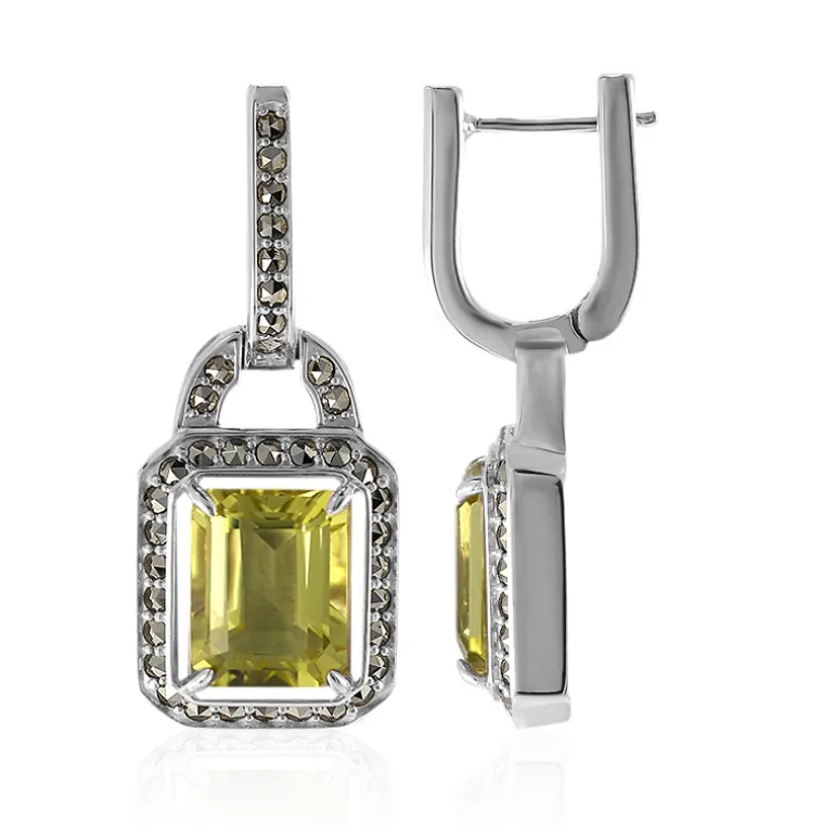 Madagaskar Limon Citrin & Markasit Silber Ohrringe, 4,14ct