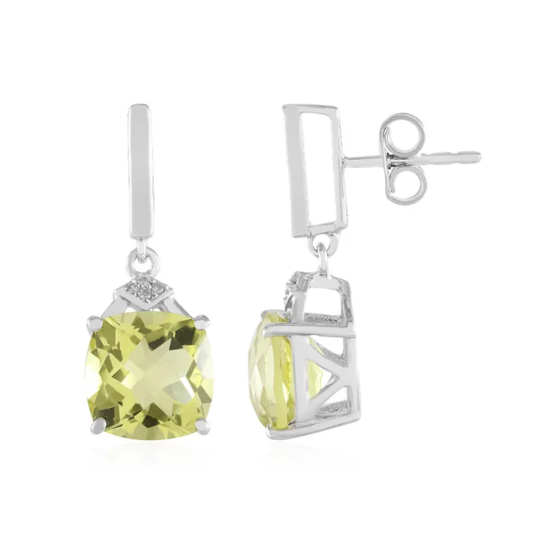 Entdecken Sie einen Hauch von Sonnenschein mit diesen exquisiten Limonenquarz-Ohrringen aus Sterlingsilber. Mit zwei atemberaubenden brasilianischen Limon-Quarz-Steinen mit einem Gesamtgewicht von 7,335 ct in einem klassischen Kissen-Schachbrett-Schliff, ergänzt durch funkelnde Zirkone aus Kambodscha. Diese Ohrringe eignen sich perfekt, um jeder Kleidung einen Hauch von Eleganz zu verleihen, und sind sowohl für Freizeit- als auch für Abendveranstaltungen geeignet.