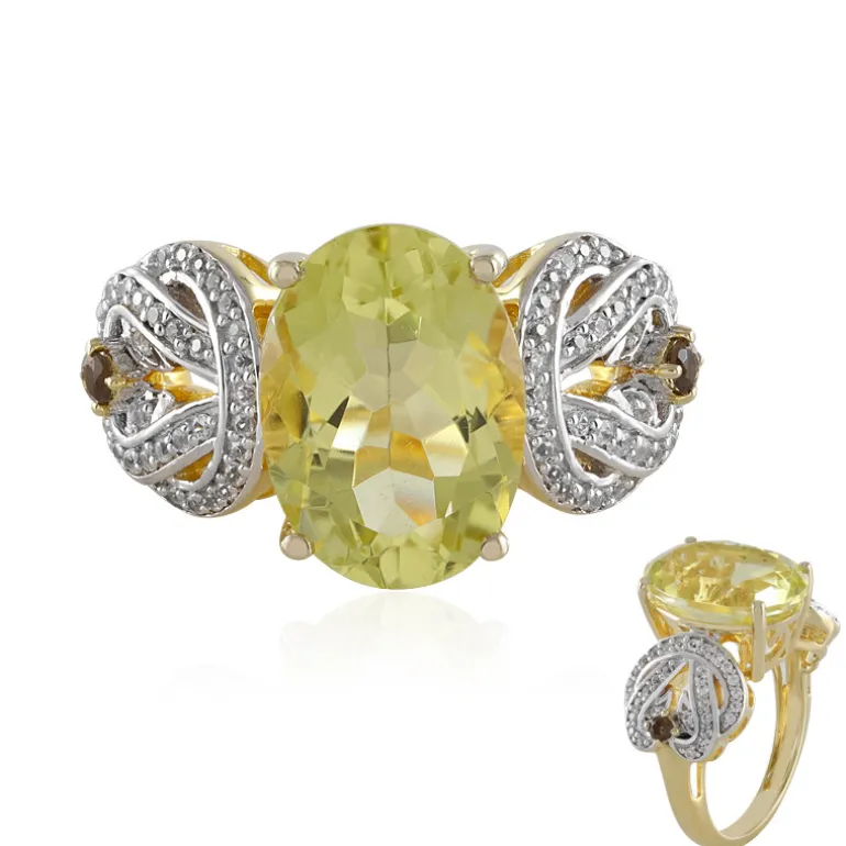 Schmücken Sie Ihren Finger mit den leuchtenden Sonnenfarben dieses Rings aus brasilianischem Zitronenquarz, der von glitzernden Zirkon-Highlights ergänzt wird. Eingefasst in ein glänzend vergoldetes 925er Sterling Silberband, steht das Kunstwerk der Natur mit einem 5,4-karätigen Zitronenquarz im klassischen Ovalschliff im Mittelpunkt. Flankiert von dezentem Rauchquarz und umgeben von 62 kambodschanischen Zirkonen, ist dieses Schmuckstück nicht nur ein Schmuckstück, sondern auch ein Gesprächsanlass. Perfekt, um einem eintönigen Outfit einen Farbtupfer zu verleihen oder als Herzstück Ihres Ensembles für eine Sommergartenparty.