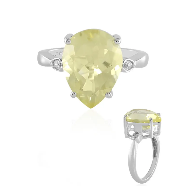 Brasilianischer Zitronenquarz & Zirkon Silber Ring, 6,58ct