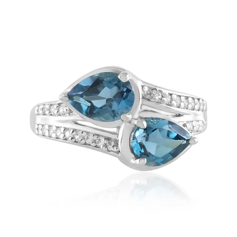 Entdecken Sie zeitlose Eleganz mit diesem raffinierten Ring, der 1,53 Karat Londoner Blautopase in einem charmanten Tropfenschliff präsentiert. Jeder Topas stammt aus Brasilien und bietet einen satten, tiefen Farbton, der das Auge fesselt. Das Band aus 925er Sterlingsilber, das mit 26 schillernden kambodschanischen Zirkonen besetzt ist, verleiht den Topas-Steinen einen Hauch von Glanz. Dieser exquisite Ring eignet sich sowohl für die Freizeit als auch für formelle Anlässe und ist eine vielseitige Ergänzung für jede Schmucksammlung.