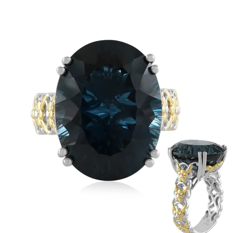 Entdecken Sie die Faszination des London Blue Topaz Sterling Silver Ring von Gems en Vogue. Mit einem atemberaubenden brasilianischen Topas von 25,2 Karat in einem auffälligen ovalen, konkaven Schliff ist dieser Ring ein wahres Meisterwerk. Der Ring aus 925er Sterlingsilber eignet sich perfekt für elegante Abende oder einen Hauch von Raffinesse im Beruf und verleiht ihm einen luxuriösen Touch. Kombinieren Sie ihn mit einem eleganten schwarzen Kleid für den ultimativ raffinierten Look.