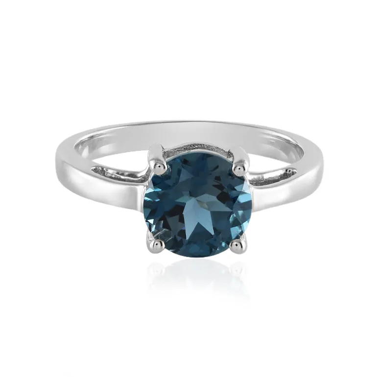 Dieser verführerische Ring zeigt einen fesselnden Londoner Blautopas mit einem tiefen, ozeanischen Farbton, der im Mittelpunkt der Aufmerksamkeit steht. Der brasilianische Edelstein mit einem Gewicht von 2,072 Karat hat einen klassischen Rundschliff, der seine atemberaubende Klarheit und Farbe hervorhebt. Er ist eingebettet in ein elegantes 925er Sterlingsilberband mit einer Platinveredelung für dauerhaften Glanz. Das schlichte Design unterstreicht die natürliche Schönheit des Topas und macht diesen Ring zu einem vielseitigen Schmuckstück für den Alltag oder einen Hauch von Eleganz für besondere Anlässe. Er symbolisiert Treue und Liebe und ist das perfekte Geschenk, um Hingabe auszudrücken.