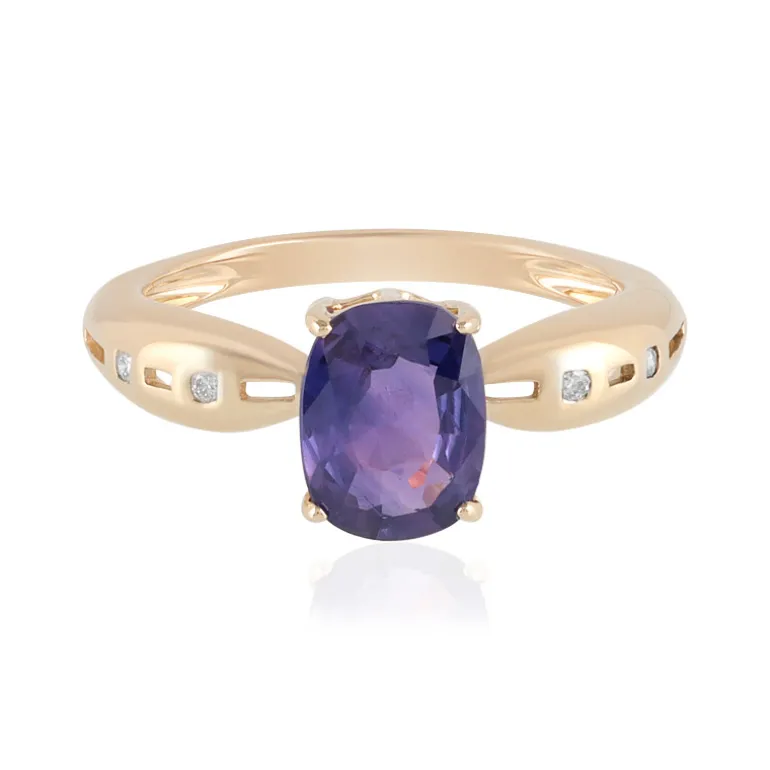 Entdecken Sie den Charme der Authentizität mit unserem Ring aus 14 Karat Gelbgold, der mit einem unbehandelten Saphir von 1,71 Karat aus Luc Yen, Vietnam, geschmückt ist. Der antike Saphir im Kissenschliff besticht durch sein tiefes Violettblau, das von vier Diamanten im Brillantschliff mit Reinheit SI1 harmonisch akzentuiert wird und für ein subtiles Funkeln sorgt. Mit einem Gewicht von etwa 2,63 g verkörpert dieser Ring zeitlose Eleganz und Raffinesse. Er eignet sich sowohl für die Freizeit als auch für formelle Anlässe und ist eine luxuriöse Ergänzung für jede Schmucksammlung.