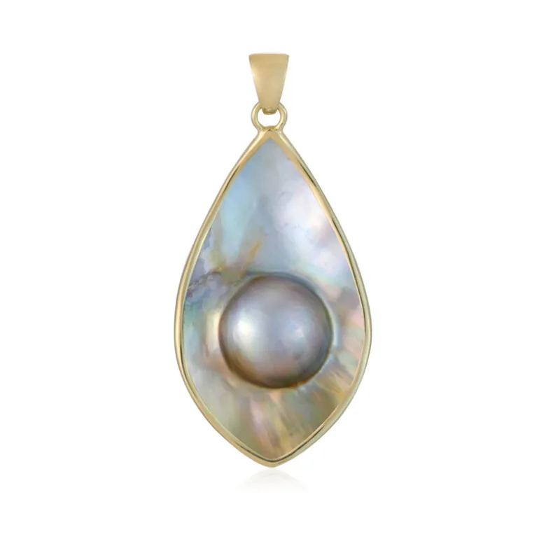 Indonesischer Mabe-Perlen-Anhänger aus vergoldetem Silber