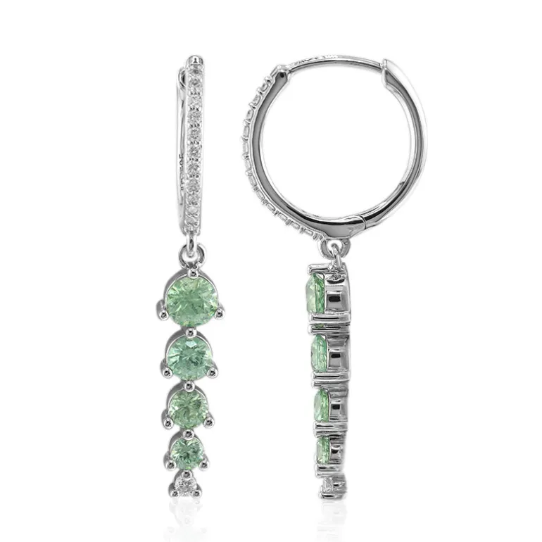 Entdecken Sie die Faszination dieser von John Ferry entworfenen Ohrringe mit einer Reihe funkelnder Demantoide aus Madagaskar, die von 26 Diamanten der Reinheit SI2 ergänzt werden. Die in elegantem 14-karätigem Weißgold gefassten Ohrringe sind von 4 mm bis 2,5 mm fein abgestuft und haben ein Gesamtgewicht von 1,276 ct. Das zeitlose Design und die leuchtenden Grüntöne dieser Ohrringe sind perfekt für anspruchsvolle Anlässe oder um Ihrer Alltagsgarderobe einen Hauch von Luxus zu verleihen und werden Sie mit Sicherheit in ihren Bann ziehen.