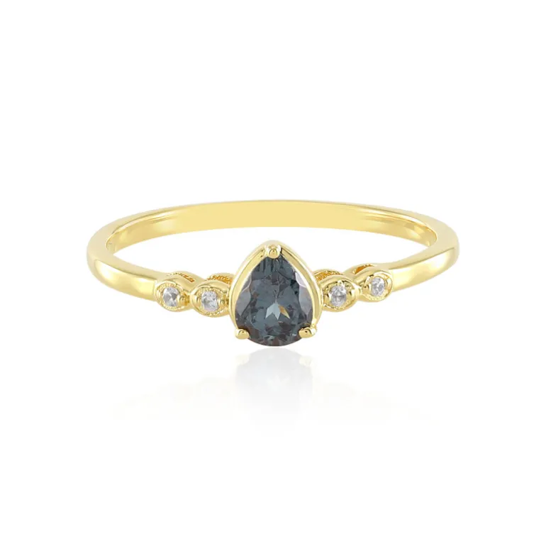 Entdecken Sie den Zauber der Farbveränderung mit diesem exquisiten Ring aus 925er Sterlingsilber, der elegant und perfekt vergoldet ist. Sein Herzstück ist ein tropfenförmiger Madagaskar Color Change Granat von 0,398 Karat, der für seine dynamischen Farbtöne bekannt ist. Umgeben von leuchtenden kambodschanischen Zirkon-Akzenten von insgesamt 0,024 ct, strahlt dieses Stück Raffinesse aus. Sein schlankes Design und seine Größe von 23 x 19 mm machen ihn zu einem vielseitigen Schmuckstück, das sowohl tagsüber als auch abends glänzt.